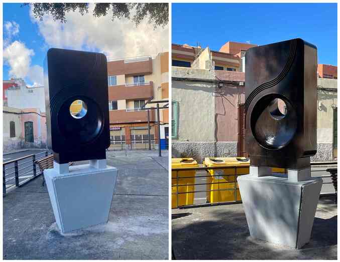 Para concluir queremos recordar que otra obra, bastante original, que se hallaba en la rotonda de la calle Félix Alvo, en la Playa del Hombre- Telde, bajo el título de “Tensión” fue desmontada por peligro de desplome pero jamás se intentó recuperar. La referida obra afectada fue inaugurada el día 12 de febrero de 1994. Otra pérdida más de nuestro patrimonio escultórico y sin respuesta. Y me pregunto, si saben que no serán capaces de lograr su mantenimiento para qué las erigen. La autora de estas dos obras mencionadas es Isabel López Padrón.