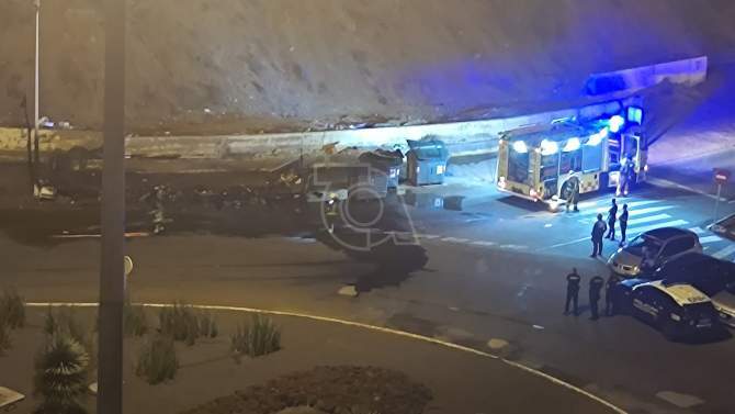 En la calle Fernando Sagaseta, a la altura de la rotonda de Eucaliptos I, cinco contenedores están ardiendo en estos momentos, según informan vecinos del lugar. Las llamas han provocado varias explosiones, generando gran preocupación entre los residentes.