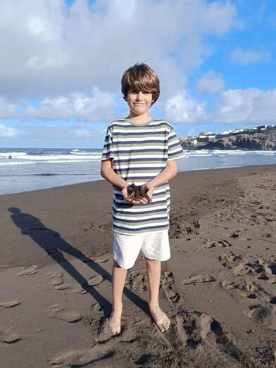 Lamentablemente los plásticos son lo más abundante, pero entre ellos, siempre se esconde alguna sorpresa. El sábado 19 de octubre de 2024, el objetivo era buscar dragones azules, como ya hizo hace un par de semanas encontrando decenas de ellos. Una compañera de sus padres los necesita para una investigación en la Universidad de Las Palmas de Gran Canaria y las playas de Telde son buen sitio para buscarlos.