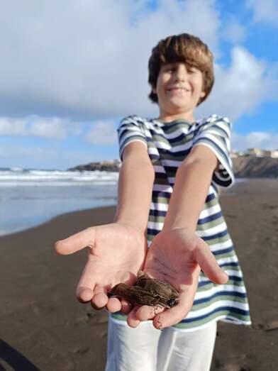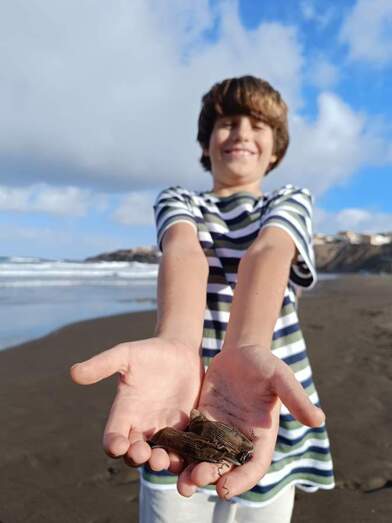 Un paseo madrugador de fin de semana por la playa, puede convertirse en un descubrimiento si se aprende a mirar. Jon, un niño de 9 años vecino de Melenara, se acercó a buscar entre los restos flotantes que las olas y el viento acercan a la costa, como hace siempre que puede.