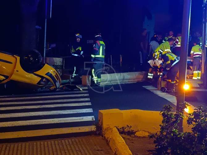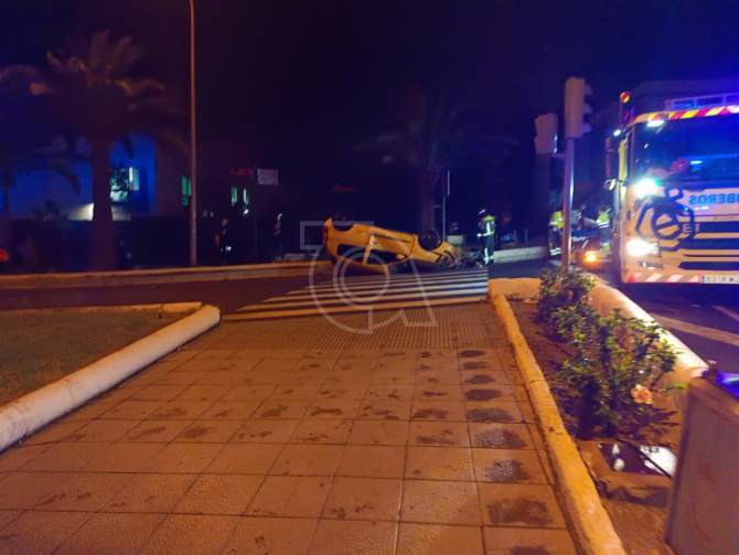 Un aparatoso accidente de tráfico con vuelco se produjo esta noche en el casco urbano de Telde, poco antes de las 22:00 horas. El suceso tuvo lugar en la rotonda de Daora, donde un vehículo volcó, lo que movilizó a los servicios de emergencia de la ciudad.