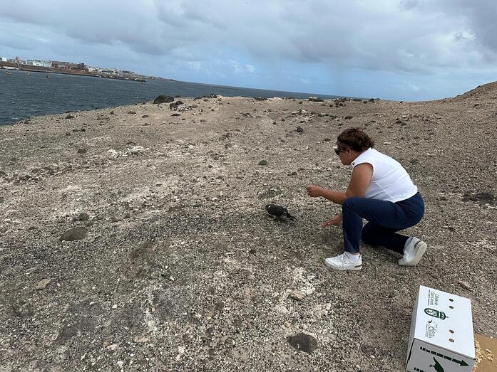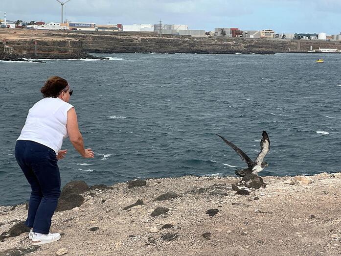 La presidenta de Turcón-Ecologistas en Acción, Consuelo Jorges, ha realizado con éxito la primera suelta de pardela cenicienta en Tufia (Telde). El ejemplar fue encontrado desorientado en la vía pública debido a la contaminación lumínica, aunque se encontraba en buen estado.