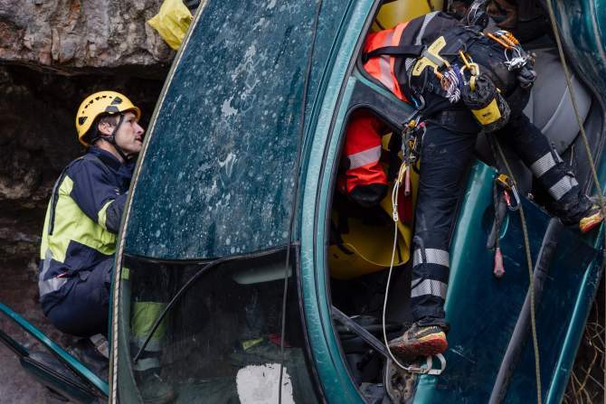 No solo fueron capaces de llegar a la víctima del interior del vehículo y utilizar herramientas de excarcelación colgados, sino que lograron extraerla, encamillarla y elevarla hasta la parte alta de la gran pared. Además, tuvieron la oportunidad de practicar el novedoso sistema de recuperación de cuerda, solo utilizado en España por el grupo de Alta Montaña de la Guardia Civil y en el que se han tecnificado los bomberos para atender las nuevas situaciones que han traído el incremento de afluencia de personas a la montaña, unas enseñanzas que resultaron de gran interés para el colectivo.