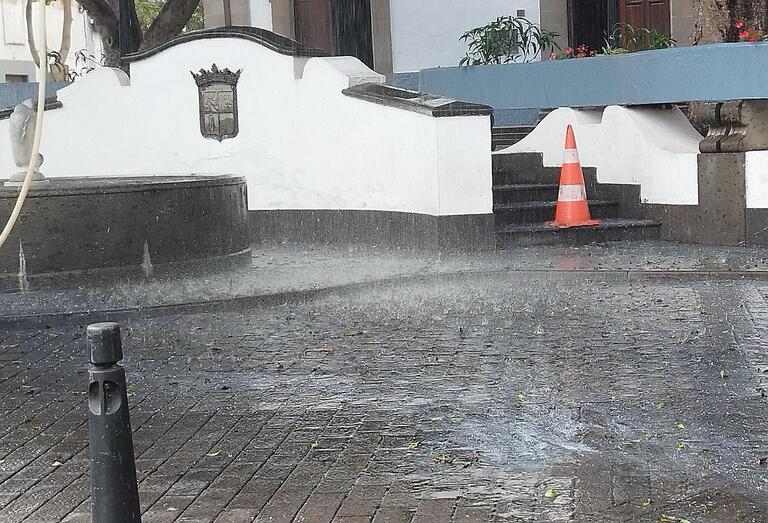 Para realizar la limpieza, los trabajadores emplearon un chorro a presión dirigido a la copa de los árboles, utilizando una grúa para alcanzar las partes más altas y garantizar una intervención efectiva.