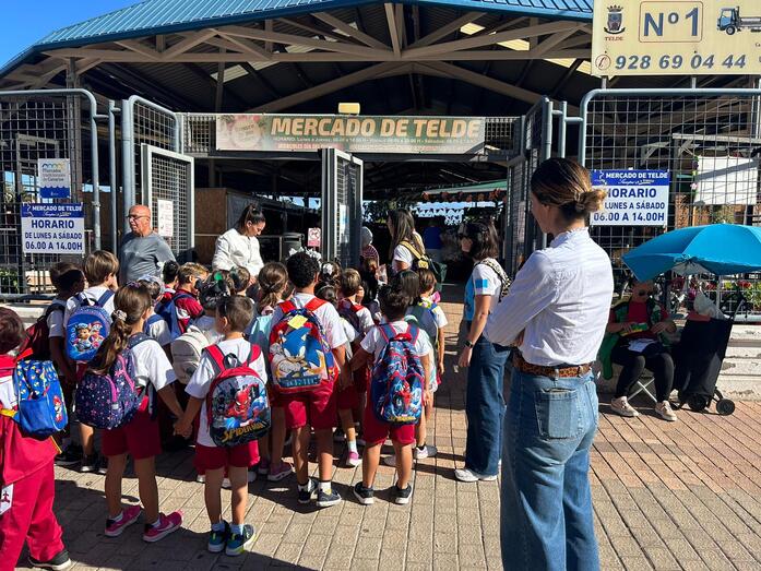 El Mercado Municipal de Telde ha recibido, durante la mañana de este miércoles, una visita muy especial. El alumnado de Primero de Primaria del CEIP La Garita se adentró, a primera hora de la mañana, en las instalaciones locales de la mano de su profesorado y con la compañía de la concejala de Mercados, Carmen Batista.