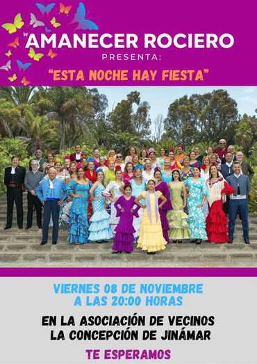 La Asociación de Vecinos La Concepción de Jinámar acoge este viernes, día 8 de noviembre, una actuación a partir de las 20.00 horas del grupo Amanecer Rociero.