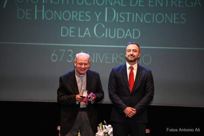 En este marco de reconocimientos, el título de Hijo Predilecto fue otorgado a Heriberto Zerpa Falcón, destacado pediatra y compositor que, tras sus estudios en la Universidad de Salamanca, ha desarrollado una carrera marcada por su dedicación a los más desfavorecidos. Su compromiso y sensibilidad han sido invaluables para la ciudad. Tras recibir el título Zerpa ofreció unas palabras en nombre de todos los galardonados, y luego interpretó Testigo de mi crecer, regalando un momento conmovedor a la ceremonia.