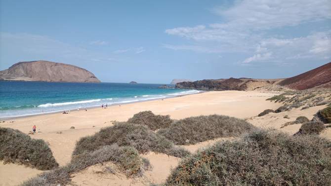 Y con los amaneceres de ensueño, llegó la luna llena de septiembre. Una luna enorme y luminosa, capaz de generar fuertes subidas y bajadas en las mareas. No hubo catastrofismo, aunque algunos organismos alertaban de ello, demandando prudencia, pero el océano se mostró cauto y se tornó tranquilo y el ir y venir de las mareas permitió, desde la calma, disfrutar de la belleza y paseo sobre bancos de arena alejados de la costa, alcanzando bajas rocosas que en otras épocas del año apenas se intuyen desde la superficie. Ocasión ideal para sorprenderse con el ascenso de la misma, corroborando una vez más que el océano alcanza alturas intencionadamente olvidadas por el ser humano -algo parecido a lo que sucede con la ocupación de vaguadas y antiguos cauces fluviales en la península y llanuras europeas, y que luego lamentamos cuando las periódicas catástrofes a todas luces predecibles arruinan cultivos, viviendas y vidas humanas-, cuyos niveles quedan registrados como avisos a futuro, como testigos a la insensatez, en ambas márgenes de las barranqueras que desembocan en la playa de Salinetas, playa de Ojos de Garza y muchas otras playas, recordándonos que antes de la acción constructora del ser humano, con viviendas y paseos implantados sobre terrenos de dominio marítimo, la extensión de las playas era mucho mayor.