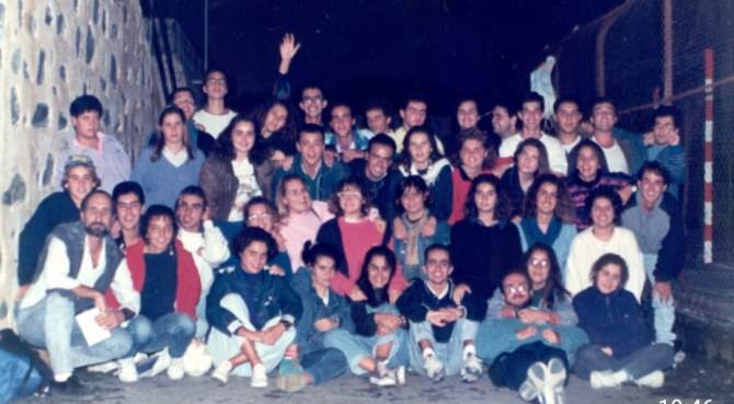 No podía faltar en este colegio y en este barrio de la mano de Luis, la creación de un grupo de teatro, quienes además han seguido encontrándose a lo largo de los años.
