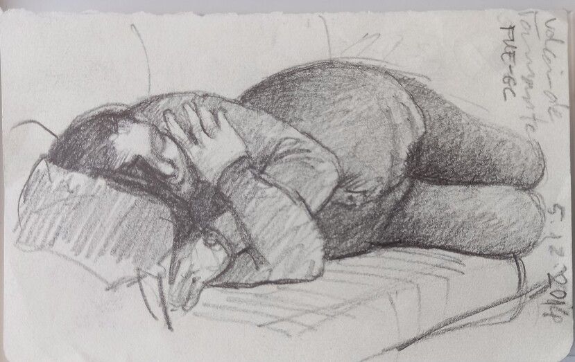 En las pequeñas piezas realizadas a lápiz durante el transcurso de esos viajes de entre tres y seis horas de duración, Socorro Alonso captura el paso del tiempo y las múltiples y singulares maneras que los pasajeros emplean para combatir las incomodidades o inconvenientes durmiendo, comiendo, jugando, trabajando, charlando o paseando y contemplando el paisaje que casi siempre está al alcance visual. Este tipo de vivencia es frecuente para muchos de los habitantes de las islas y constituye, en opinión del artista, una de las señas de identidad propias a causa del entorno geográfico y sus condicionantes.