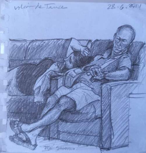 Las pinturas y dibujos reflejan una dualidad espacial concreta: son dos momentos particulares que reflejan el transcurso del viaje en un espacio interior, viajar dentro y otro exterior, viajar fuera, siempre en el mismo escenario, en la misma nave y que fijan sus títulos.