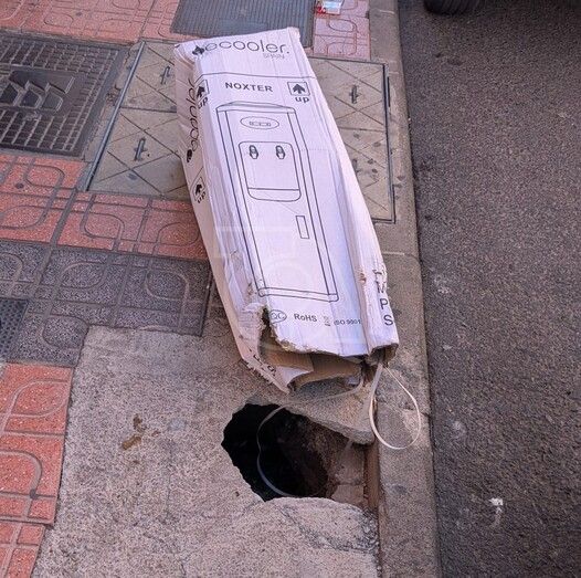 Vecinos de la zona han intentado señalizar la zona con una caja de cartón improvisada, en un esfuerzo desesperado por evitar accidentes, pero temen que este recurso temporal no sea suficiente.