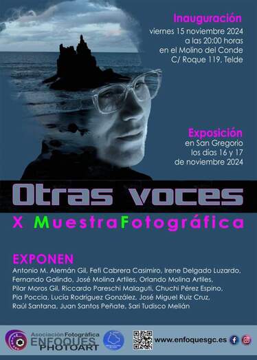 El grupo de fotografía Enfoques Photoart presentará este próximo viernes, día 15 de noviembre, su décima exposición, una muestra comisariada por José Molina Artiles y que lleva por título Otras Voces. La cita será a las 20.00 horas en la sede del Círculo Cultural de Telde, en el antiguo Molino del Conde.