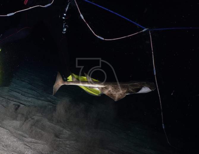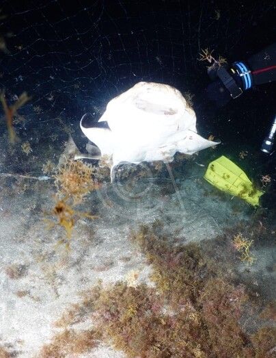 Según ha podido saber TELDEACTUALIDAD, En la red estaban atrapadas diversas especies marinas, incluidas algunas protegidas y en peligro de extinción,tales como angelotes, un tiburón emblemático de las Islas Canarias, mantelinas o chuchos, incluidas varias hembras de angelotes preñadas