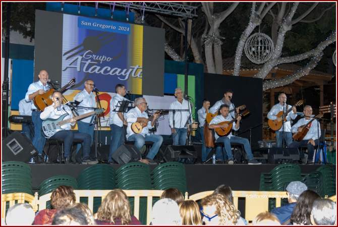 El grupo folclórico Atacayte ofreció el pasado viernes un recital lleno de energía y fusión musical en el entorno de la plaza de Los Llanos, como parte del programa festivo de San Gregorio Taumaturgo.