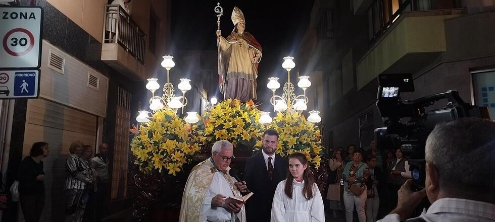 Tras la eucaristía celebrada en el templo neoclásico de San Gregorio, ubicado en la zona comercial de Telde, la imagen del santo salió en procesión ante la mirada devota de vecinos y visitantes. La misa fue concelebrada por varios sacerdotes del Arciprestazgo de Telde, con la homilía a cargo del nuevo párroco, Agustín Lasso Tadeo.
