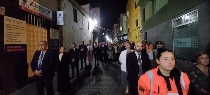 La procesión estuvo acompañada por la Banda Municipal de Telde, que puso el toque musical a la noche, y contó con la participación de diversas autoridades locales, encabezadas por el alcalde de la ciudad, Juan Antonio Peña.