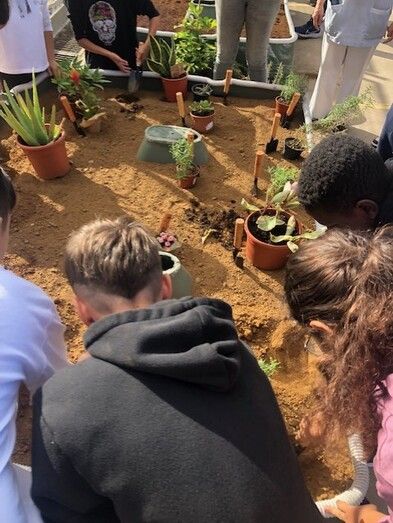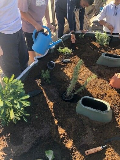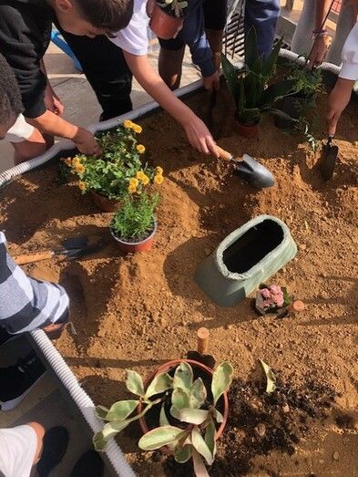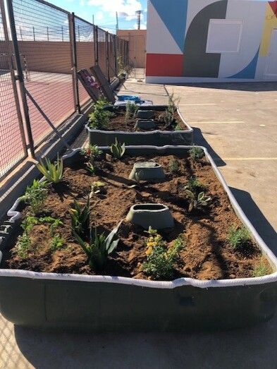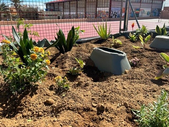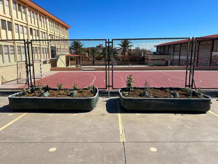 Después de llenar los parterres con tierra fértil, el lunes 18 de octubre, el alumnado de 1ºESO trasplantó las especies vegetales aportadas por la comunidad educativa. Y así es como ha ido tomando forma el primer refugio climático del instituto. "No sólo conseguiremos disminuir la temperatura del suelo sino también la cantidad de CO2 que emitimos a la atmósfera, uno de los principales gases responsables del efecto invernadero y del cambio climático. Aportaremos oxígeno a la misma y lograremos que nuevas formas de vida puedan colonizar nuestro patio", explican desde el centro.