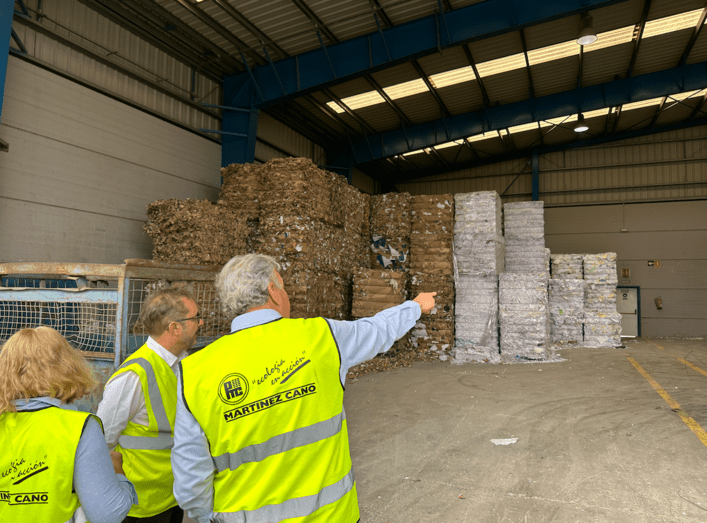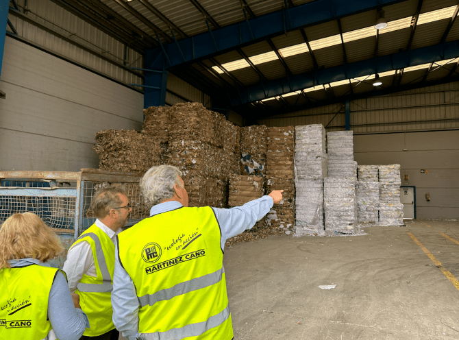 La visita dio inicio en las instalaciones de Martínez Cano, ubicadas en el municipio de Telde, donde se gestionan residuos de papel y cartón. El 75% del material reciclado en esta planta proviene de comercios e industrias, mientras que el 25% corresponde a la ciudadanía.