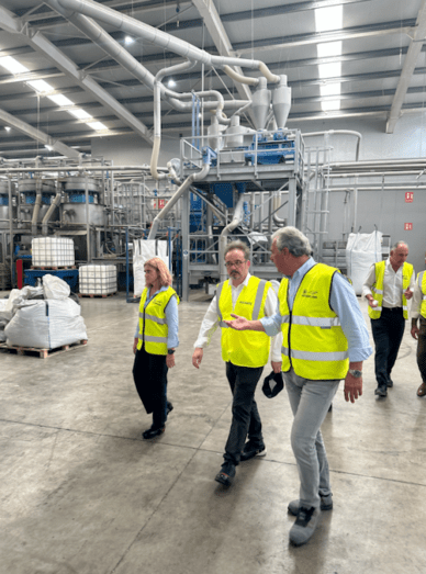 Tras la primera parada, la delegación visitó Plascan, una empresa líder en la transformación de plásticos y reciclaje, con dos plantas estratégicas también ubicadas en Telde.