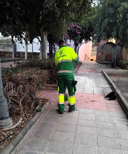 Para esta acción, el equipo de trabajo estuvo formado por cuatro conductores y ocho peones polivalentes, que se encargaron de llevar a cabo labores de barrido manual y mecánico, recogida de voluminosos, deshierbe y mantenimiento y lavado de contenedores y papeleras.