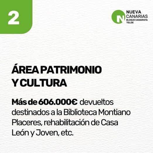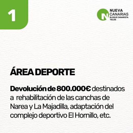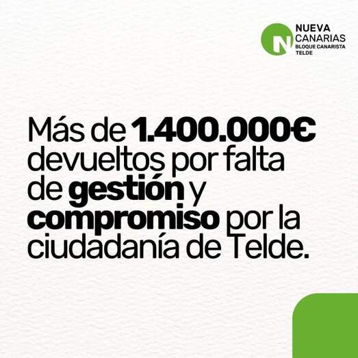 El partido Nueva Canarias de Telde ha denunciado públicamente la devolución de más de 1.425.000 euros que estaban destinados a las áreas de Deporte, Juventud y Cultura, señalando directamente al Gobierno de Telde, presidido por Juan Antonio Peña, como responsable de esta situación.