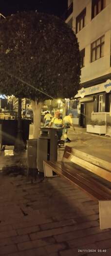 La Concejalía de Limpieza Viaria, bajo la tutela de la edila María González Calderín, desplegó en la madrugada un amplio dispositivo de limpieza con recursos mecánicos y un numeroso equipo humano para asear el entorno de la plaza de Los Llanos de Telde. El operativo se llevó a cabo tras la celebración anoche de un memorial murguero que dejó más de 600 kilos de residuos esparcidos por la plaza y las calles aledañas.