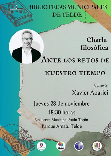 La Biblioteca Municipal Saulo Torón, en el parque Arnao de Telde, acoge este jueves 28 de noviembre, a partir de las 18.30 horas, una charla filosófica a cargo del filósofo Xavier Aparici, artículista ocasional de TELDEACTUALIDAD.
