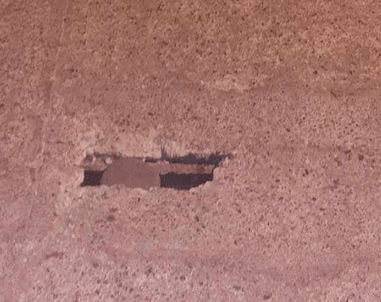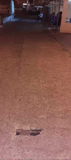Vecinos de la zona advierten de un socavón en el acceso al muelle de Melenara, en la prolongación de la calle de Luis Morote, después de la zona de restauración.