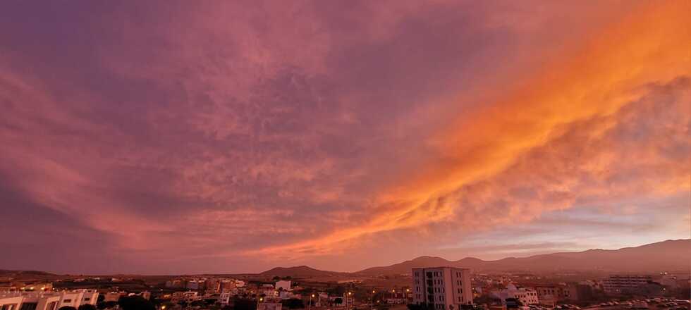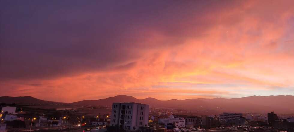 Poco antes del anochecer, el cielo del este del municipio teldense se ha transformó en un lienzo de colores cálidos y vibrantes, ofreciendo un espectacular ocaso crepuscular. El atardecer ha pintado el horizonte con tonos anaranjados, rojizos y violetas que han dejado sin aliento a quienes han tenido la fortuna de contemplarlo.