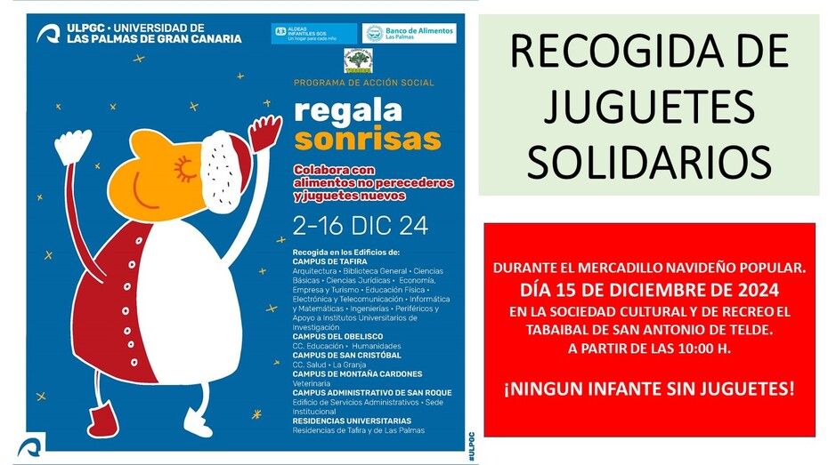 Por otra parte, la Sociedad El Tabaibal, comprometida con el bienestar animal y para ayudar a los animalitos abandonados, tendrá otro puesto solidario para aquellos que quieran entregar artículos para su cuidado, ya sea comestibles, medicamentos, objetos, desparasitaciones etc., que irán a colonias controladas por personas voluntarias y amantes de la vida.