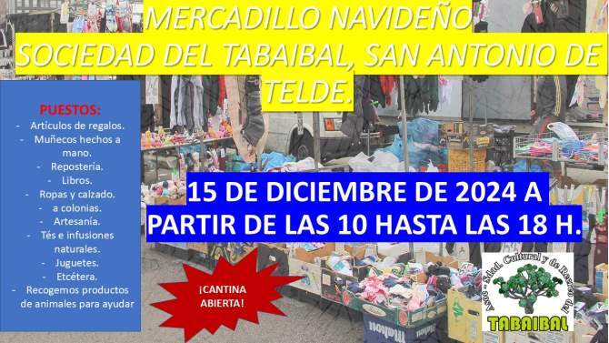 La Sociedad Cultural y de Recreo El Tabaibal, en San Antonio, organiza el próximo domingo, 15 de diciembre, un mercadillo popular navideño en el salón social de esta entidad histórica.