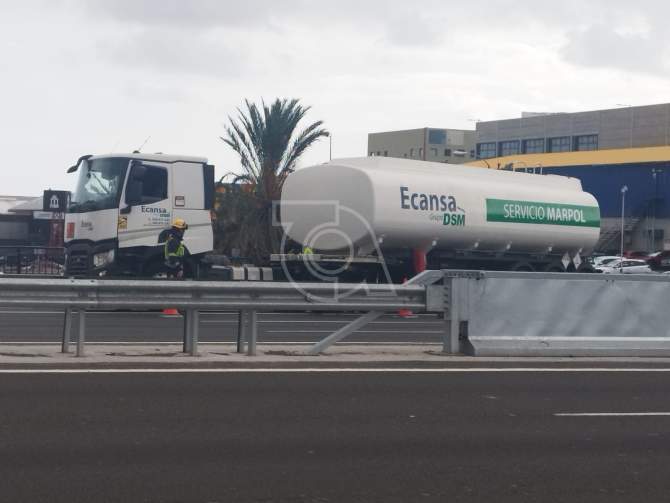 Imagen del incidente/Foto Juan C. Melián.Hace aproximadamente 20 minutos, la cabeza tractora de un camión cisterna se soltó de su remolque en la autovía GC-1, a la altura de salida de Salinetas en dirección hacia la capital.