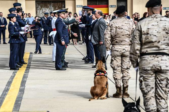 Tras los honores de ordenanza y la revista a la fuerza, se procedió a la ceremonia de imposición de condecoraciones, y despedida de la Bandera del personal que ha pasado a la situación de reserva o jubilación.