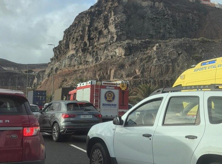 En el accidente, una mujer resultó herida leve y fue trasladada al Hospital Insular en una ambulancia medicalizada del Servicio de Urgencias Canario (SUC), según confirmó el 112.