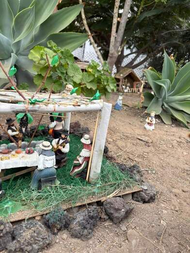 Este año, la autora y su hija menor Beatriz Henríquez, realizaron nuevas construcciones para el escenario navideño: un desierto, el mítico retrete, un gallinero, un balcón canario y hasta un mercado tradicional con los típicos puestos de frutas, verduras, carnes, pescados, especias, etc.