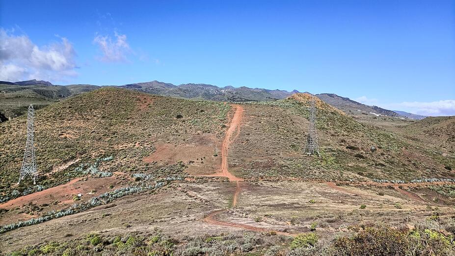 Es en esta dirección por donde discurre la Red de Alta tensión que cruza el campo de volcanes. Con tres torretas en la base de este cono y procedente de la torreta de Montañeta Fría y ésta de la montaña de El Plato, la línea cruza el barranco del Draguillo en dirección sur.