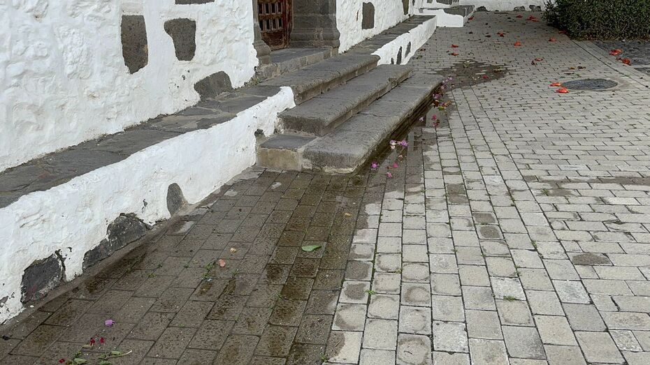 Vecinos del barrio histórico de San Francisco advierten de un vertido de aguas blancas en la plaza, que podría deberse a una avería del servicio de abastecimiento.
