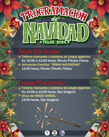 El sábado, el Rincón Plácido Fleitas, junto a la plaza de San Juan, será el escenario donde arrancarán las actividades desde las 10.00 horas de la mañana. Talleres manuales y una ludoteca de juegos gigantes inaugurarán la jornada, ofreciendo a los niños y niñas la oportunidad de explorar su creatividad y participar en dinámicas grupales. A las 12.00 horas, el entretenimiento dará un giro hacia la animación con Rimas Navideñas, un espectáculo diseñado para emocionar y divertir a toda la familia.