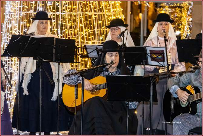 El grupo ofreció una selección de villancicos tradicionales canarios acompañados de pequeñas representaciones teatrales que evocaron las navidades en el Archipiélago.