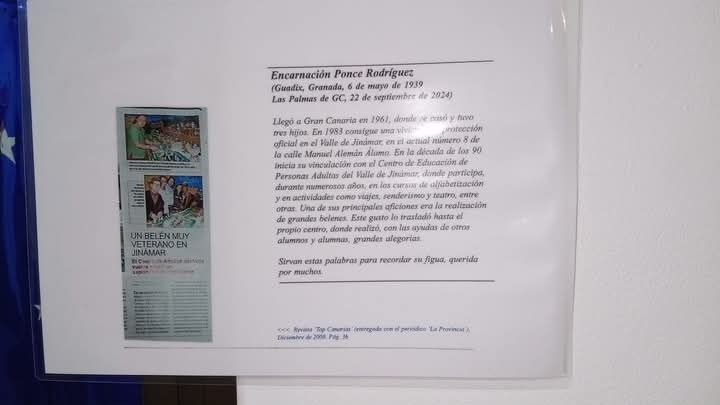 La comunidad educativa del Centro de Educación de Personas Adultas (CEPA) Telde - Jinámar rindió un emotivo homenaje a Encarnación Ponce Rodríguez, una querida alumna que falleció el pasado mes de septiembre a los 85 años de edad.