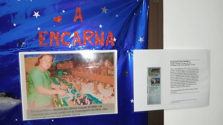Era precisamente Encarnación Ponce quien se encargaba de montar cada año el belén del CEPA. Por ello, aprovechando las fechas navideñas, el centro quiso recordarla en un acto que se celebró recientemente y al que acudieron familiares, entre llos su hijo el periodista Antonio José Fernández Ponce, y antiguos compañeros y docentes como Lali Beníte y Fátima Jiménez. "Encarna fue precursora y conocida por elaborar preciosos y enormes belenes", subrayan con emoción.