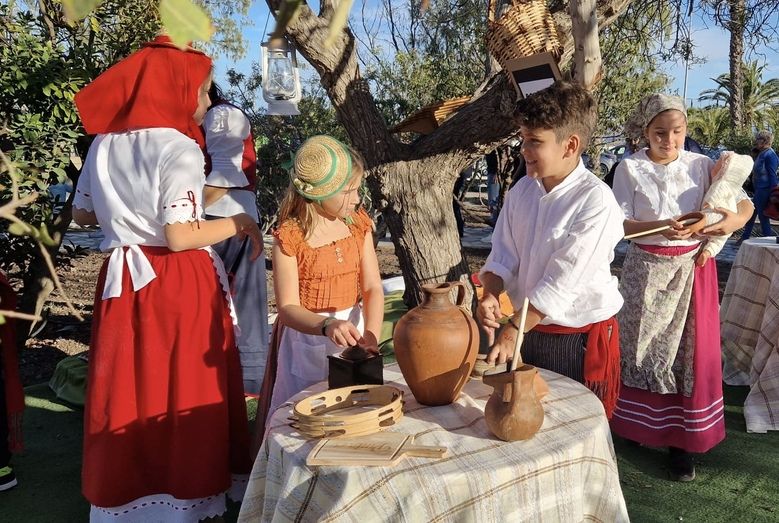 En el recorrido, no faltaron detalles que evocaban los Nacimientos de antaño: una quesería donde se elaboraba queso en directo, una panadería llena de harina y risas, un mercadillo con frutas, verduras y manualidades elaboradas por los propios alumnos, y animales reales, como ovejas y una vaca con su ternero, que hicieron las delicias de los más pequeños. La música también fue protagonista, con animados villancicos interpretados por los niños, que añadieron aún más magia al evento.