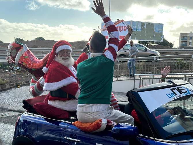 Papá Noel ha recorrido este sábado parte del municipi de Teldeo con la idea de llegar a los niños de todos sus barrios. En esta jornada, que arrancó a las 10.00 horas, visitó en primer lugar los barrios de medianías y cumbre, el distrito de Jinámar y también aquellos que están situados al este del casco urbano. El recorrido estuvo marcado por una ligera llovizna que no alteró la programación prevista por el Ayuntamiento.