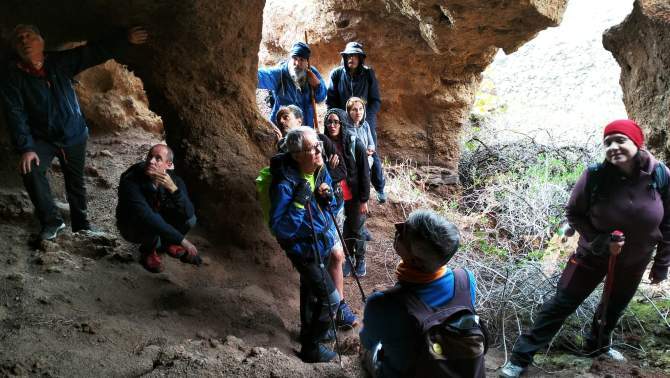 Uno de los momentos más destacados de la ruta fue la visita al yacimiento indígena de Cuevas del Palomar, declarado Bien de Interés Cultural (BIC). Las explicaciones y narraciones del arqueólogo teldense Abel Galindo añadieron un valor especial al recorrido, al proporcionar un contexto histórico y cultural que enriqueció la experiencia de los asistentes.