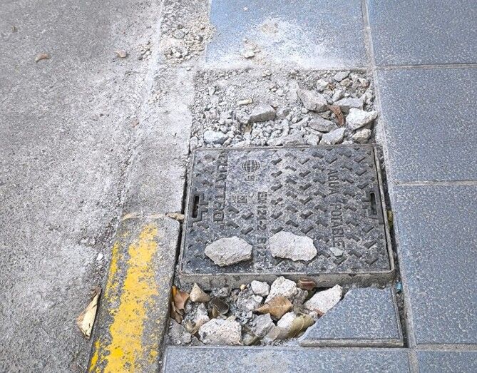 Además, los vecinos indican que la situación se agrava con una tapa de suministro levantada en la esquina, a escasos metros de la zona inacabada. "Ya era complicado caminar con la tapa levantada, y ahora esto", añadió otro residente.
