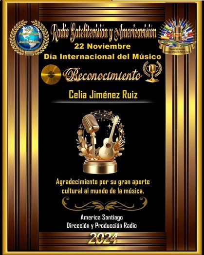 La cantante teldense Celia Jiménez ha recibido un reconocimiento de parte de la emisora internacional Radio Satélitevisión y Americavisión, con sede en Chile, por su importante aporte cultural a la música.