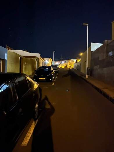 Estado de la calle sin luz este domingo a las 19.35 horas, según fotos remitidas por vecinos de la calle de Goya.La oscuridad sigue siendo la protagonista en un tramo importante de la calle Goya, en el núcleo costero de Playa del Hombre, Telde, donde un apagón afecta desde hace cinco noches sin que el servicio de mantenimiento del alumbrado público haya tomado medidas para solucionarlo.