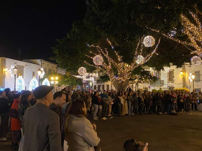 Bajo el cielo estrellado de Telde y envueltos en la cálida iluminación de velas, decenas de personas se congregaron esta noche en la histórica plaza de San Juan para vivir una experiencia inolvidable con Magical Christmas, un espectáculo que combina música, tradición y espíritu navideño.