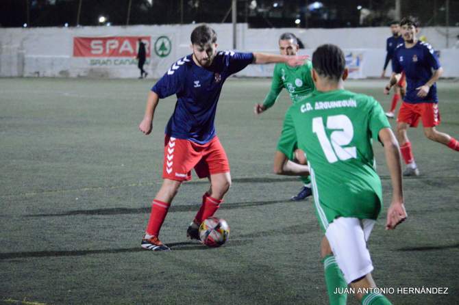 Incidencias: Partido correspondiente a la jornada 19 de la Regional Preferente de Las Palmas celebrado en el campo de fútbol de Arguineguín (Mogán). Césped artificial en malas condiciones. Buena iluminación en líneas generales. Noche templada (20 º C, AEMET) con sensación de frío por la humedad. Se guardó un minuto de silencio por el fallecimiento de José Manuel Ortega Santana, exportero del CD Arguineguín en su época dorada. El capitán del conjunto local hizo entrega de un ramo de flores a su viuda.